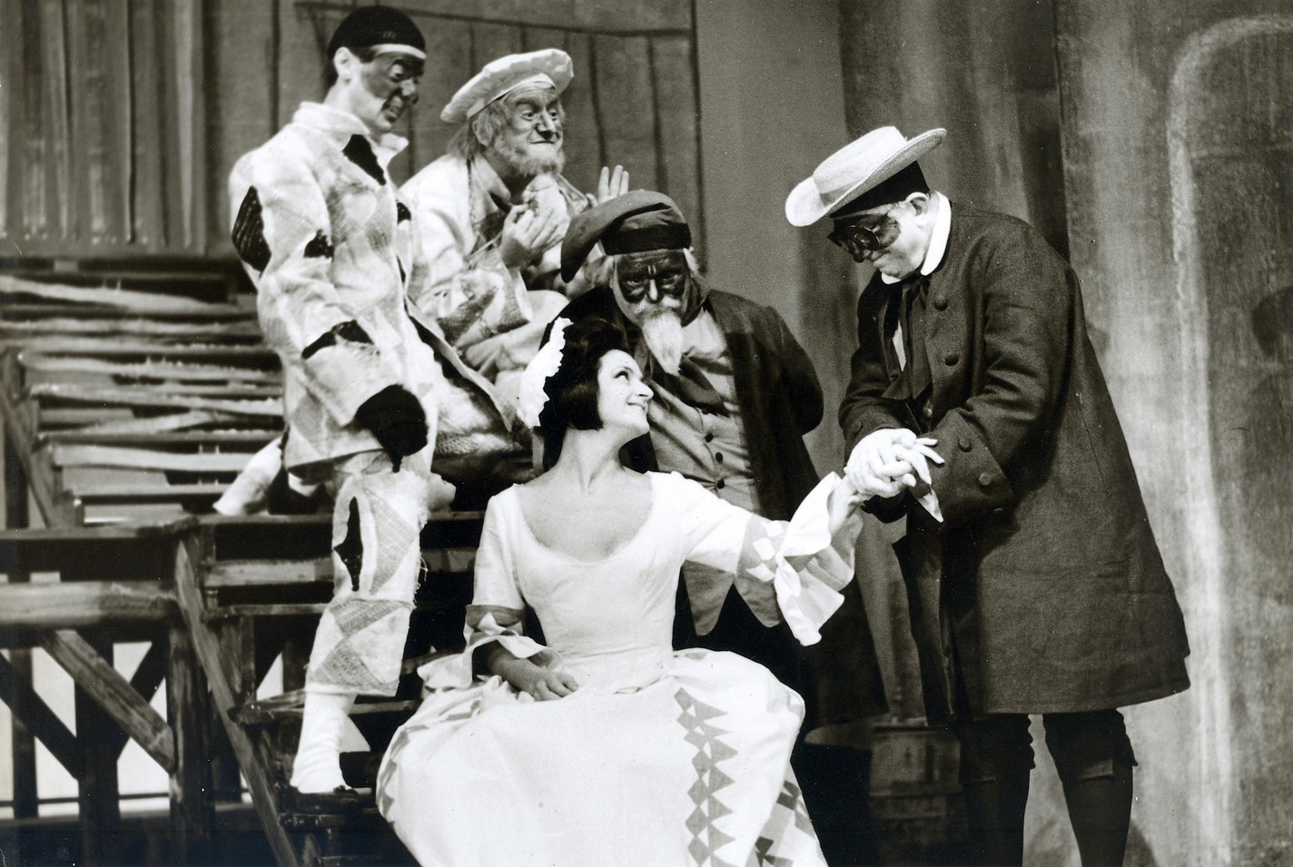 interpreti: ✔ : ; ✔ : ; ✔ Lorenza Biella: Rosaura; ✔ Marina Bonfigli: Colombina; ✔ Antonio Salines: Florindo; ✔ Franco Passatore: Brighella; ✔ Quinto Massimo Foschi: Ottavio; ✔ Carlo Bagno: Pantalone; ✔ Giulio Bosetti: Lelio; ✔ Alvise Battain: Arlecchino; ✔ Mario Piave: Un vetturino, Il bargello; ✔ Alfredo Piano: Un giovane d’un venditore di merci bianche; ✔ Margherita Pogliano: Una donna che canta; ✔ Silvana De Santis: La vecchietta, Sua madre; ✔ Renzo Rossi: Un suonatore; ✔ Bob Marchese: Un gondoliere, Un portalettere; ✔ Alessandro Esposito: Un barcaiolo; ✔ Carlo Baroni: Un locandiere; ✔ Adolfo Bonomi: Un caffettiere; ✔ Gianfranco Varetto: Un venditore ambulante, Un gondoliere, Un portalettere; ✔ Wilma Deusebio: Colombina; ✔ Ivana Erbetta: Beatrice